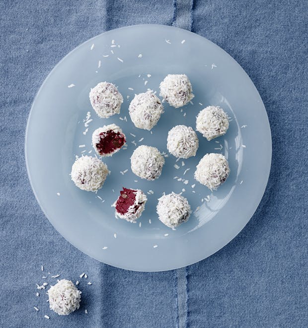 Kokostrøfler er små himmelske mundfulde primært af chokolade og fløde. Det gør konsistensen så dejlig bløde, at de små, fine kokostrøfler smelter i munden. I dette tilfælde er der endda også brugt kirsebærsaft til at give dem en helt enestående farve. Til sammen giver det små sansebomber, som du MÅ smage!