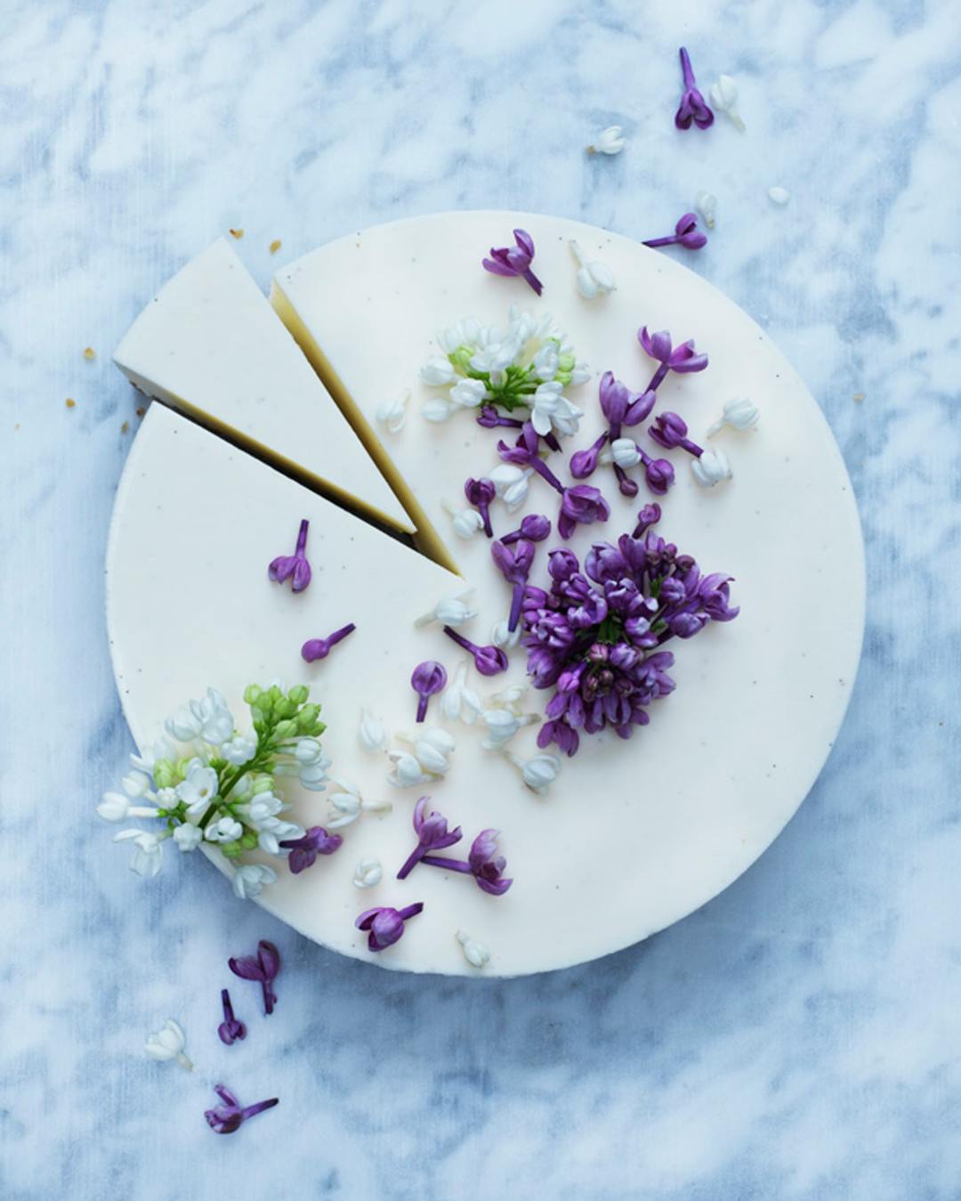 Sommerens bedste kage er den her koldskål-kage med frisk koldskål-mousse, knasende kiksebund og de smukkeste syrener. Få opskriften her!