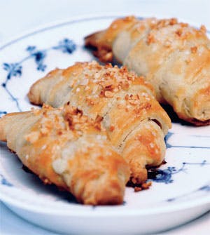 Flødehornene kan også laves med fyld af marcipan eller nougat.