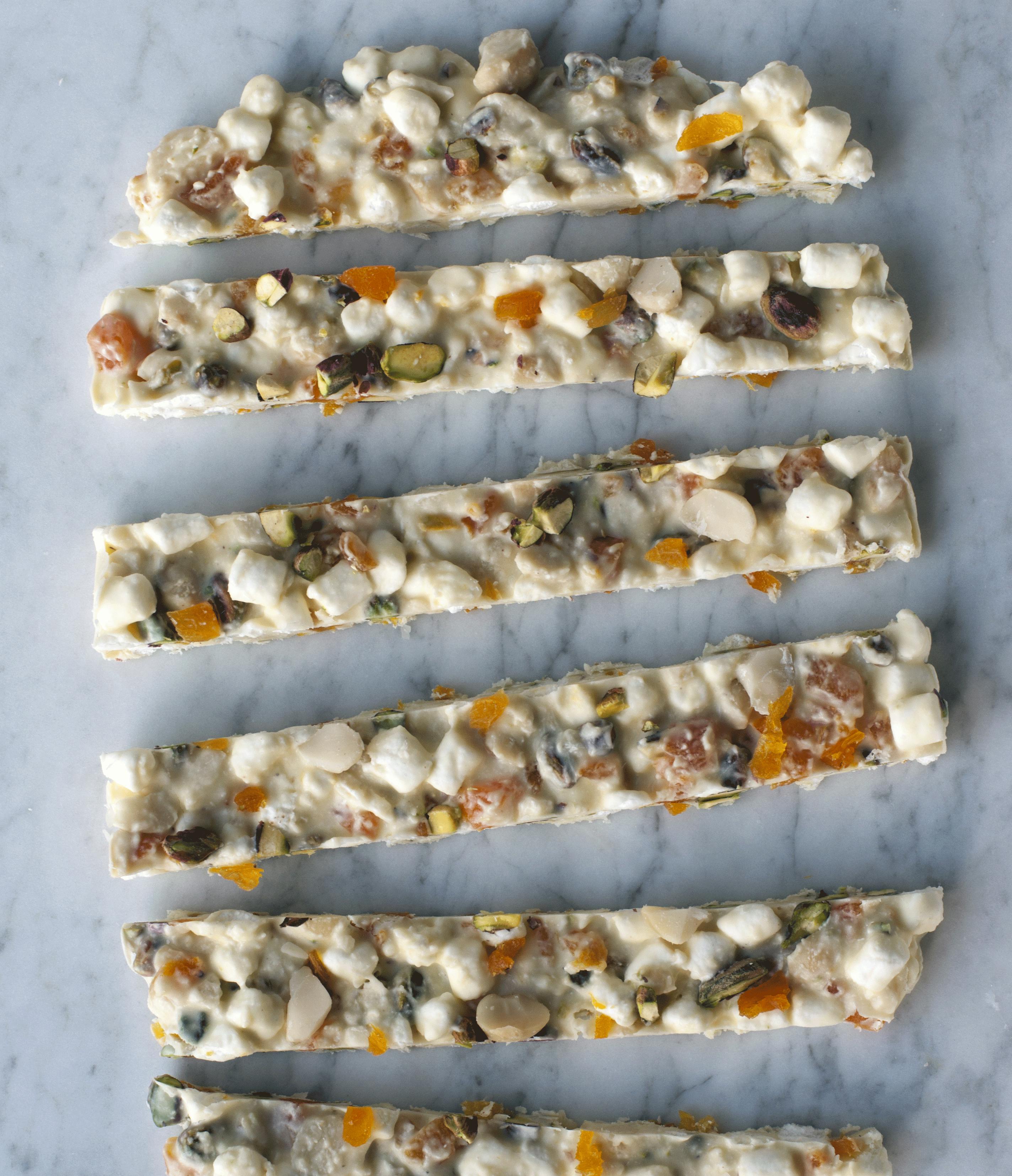 Ofte bliver rocky road lavet med mørk chokolade, men den hvide chokolade er god, hvis du har lidt syrlige frugter som fx abrikoser i blandingen.