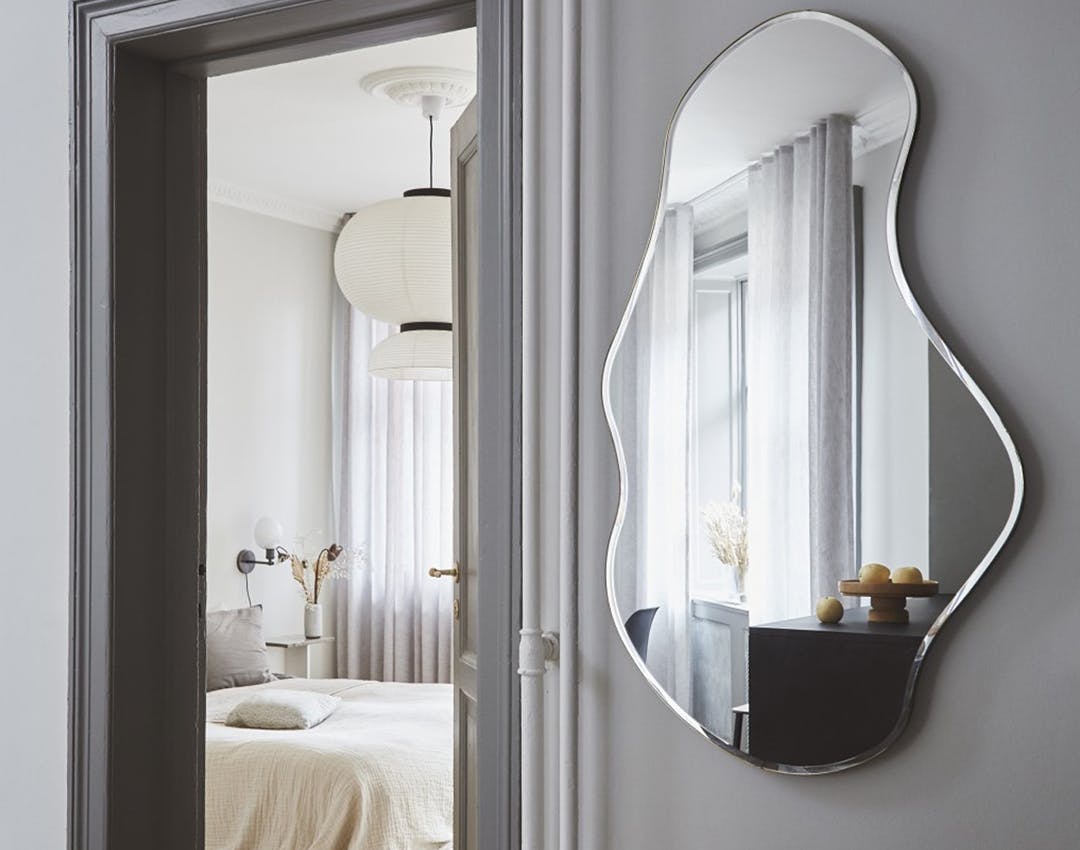 Hæng flere spejle op i forskellige geometriske former, eller gå på jagt efter et spejl, der næsten er et kunstværk i sig selv. Så kan du holde resten af indretningen neutralt, uden at resultatet bliver kedeligt.