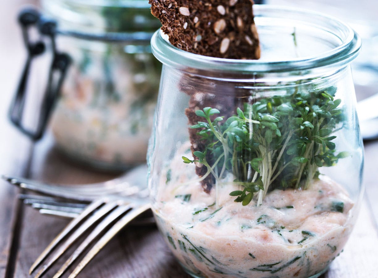 Det skal du bruge til røget lakserillette med krydderurter og ristet rugbrød