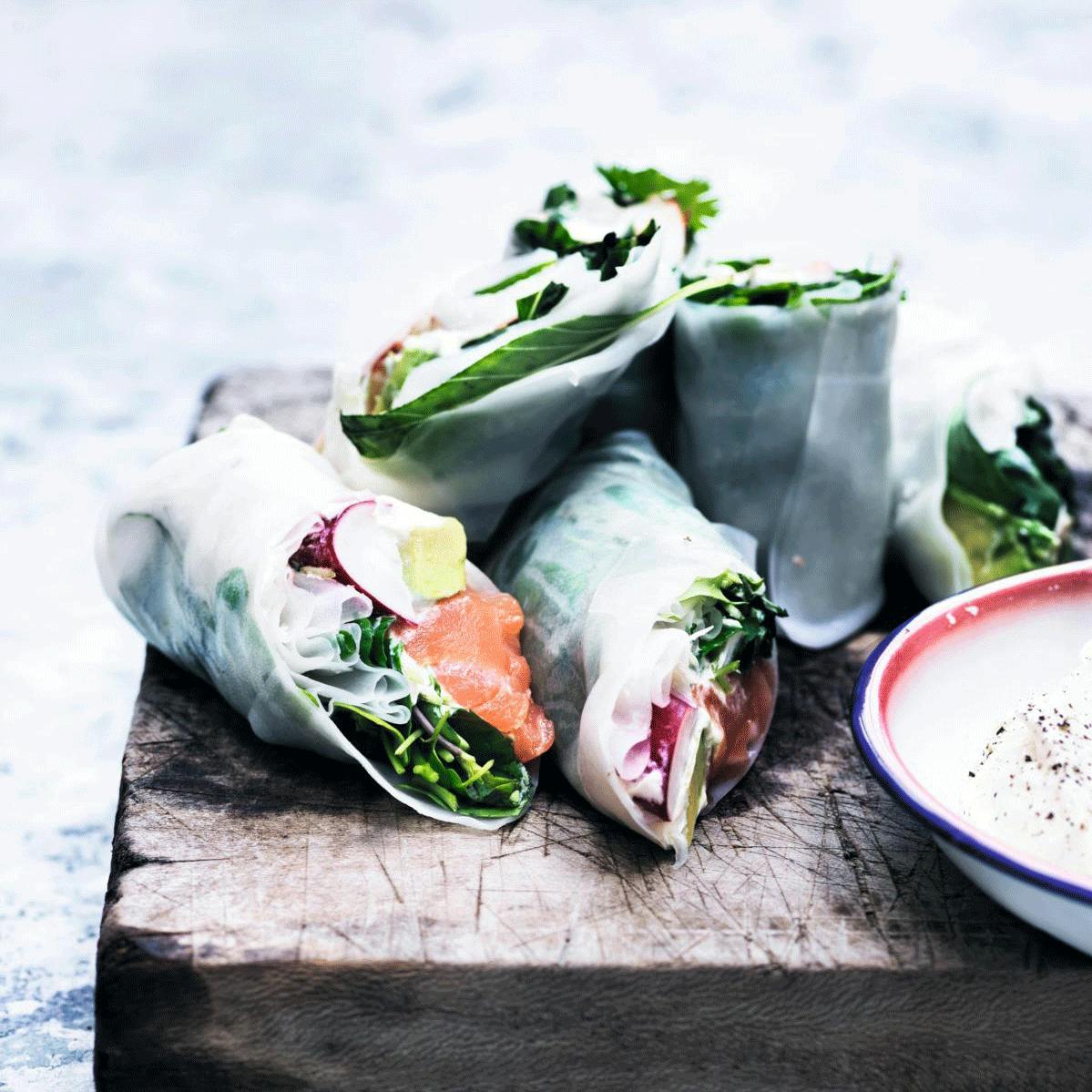 Lav vietnamesiske rispapir-ruller med laks og sprøde grøntsager, og servér dem som forret, frokostret eller helt måltid. Få opskriften her. (link fjernet)