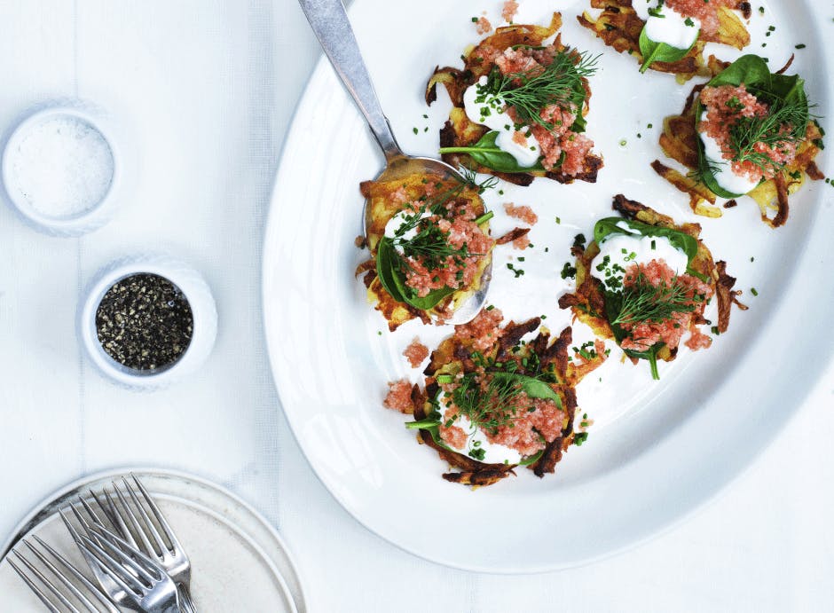 Du kan bruge retten til tapas eller som forret til påskefrokosten. Dig og dine gæster vil ikke blive skuffet over denne opskrift med stenbiderrogn og kartoffelrøsti. Og hvis du har lyst til endnu mere stenbiderrogn, så har vi samlet en håndfuld opskrifter nederst i artiklen.