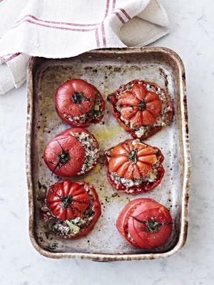 Bag dem ved 225° i 15-20 min., så de bliver bagt igennem og er flot gratinerede på toppen. Tag de bagte tomater ud, og server dem med det samme.