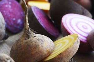 Rødbede er en rund til aflang rodfrugt, hvor både roden og bladene kan bruges. Vi kender bedst den rødviolette rødbede, men rødbede kan også være hvide, gule, stribede og sorte.
