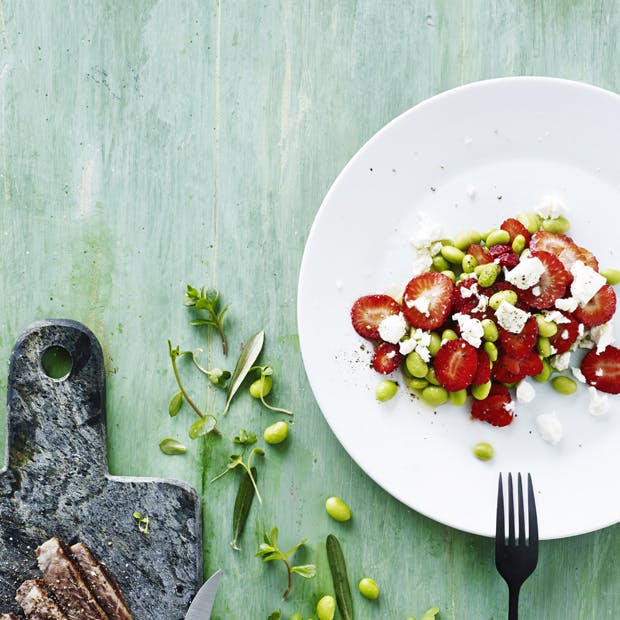 Den nemmeste måde at lave en sikker vinder på sommermenuen er ved at købe noget godt kød, grille det helt rigtigt og så servere den skønneste sommersalat til. Vores absolutte favorit-sommersalat er med jordbær, feta og edamame-bønner, fordi det er den helt perfekte blanding af sødme, sprødhed og blødhed. Og så er det jo heller ikke ligefrem et minus, at salaten også ligner en million og kan live enhver tallerken op.