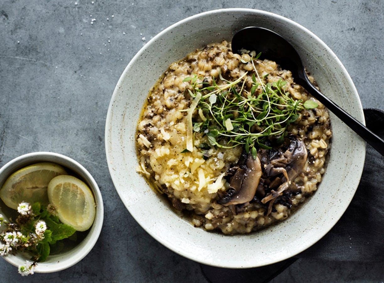 Bygotto er den nordiske version af den klassiske italienske risottoret. Den er lavet på perlebyg i stedet for risottoris, men den har samme cremede fylde som sin italienske ris-fætter. Den laves i mange variationer, men vi har fået lov at få den originale opskrift på den berømte bygotto med svampe fra restaurant GRØD, der om nogen ved, hvordan man laver kedelige korn til fantastiske nordiske retter med masser af smag.Smag også: Bygotto med spinat