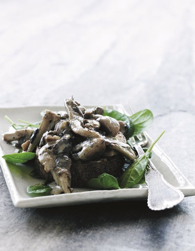 Et italiensk festmåltid består typisk af antipesti, primi, secondi, contorni og dolci retter. Antipesti er "før forretten", primi er forretter, secondi er hovedretter uden tilbehør, contorni er tilbehør til hovedretten og dolci er desserter. Denne bruchetta med svampe og spinat ville i Italien gælde som en antipesto, men i Danmark har vi sjældent appetit til både en "før forret" og en forret. Derfor spiser vi de italiensk antipesti-retter som forret, men hvis du har mod og mave til det helt store italienske festmåltid, så skal der efter denne bruschetta komme en forret, som typisk vil være en risotto- eller pastaret. Prøv fx: "Før forret" i form af ravioli i salsa rosa, eller se galleriet nederst på siden.