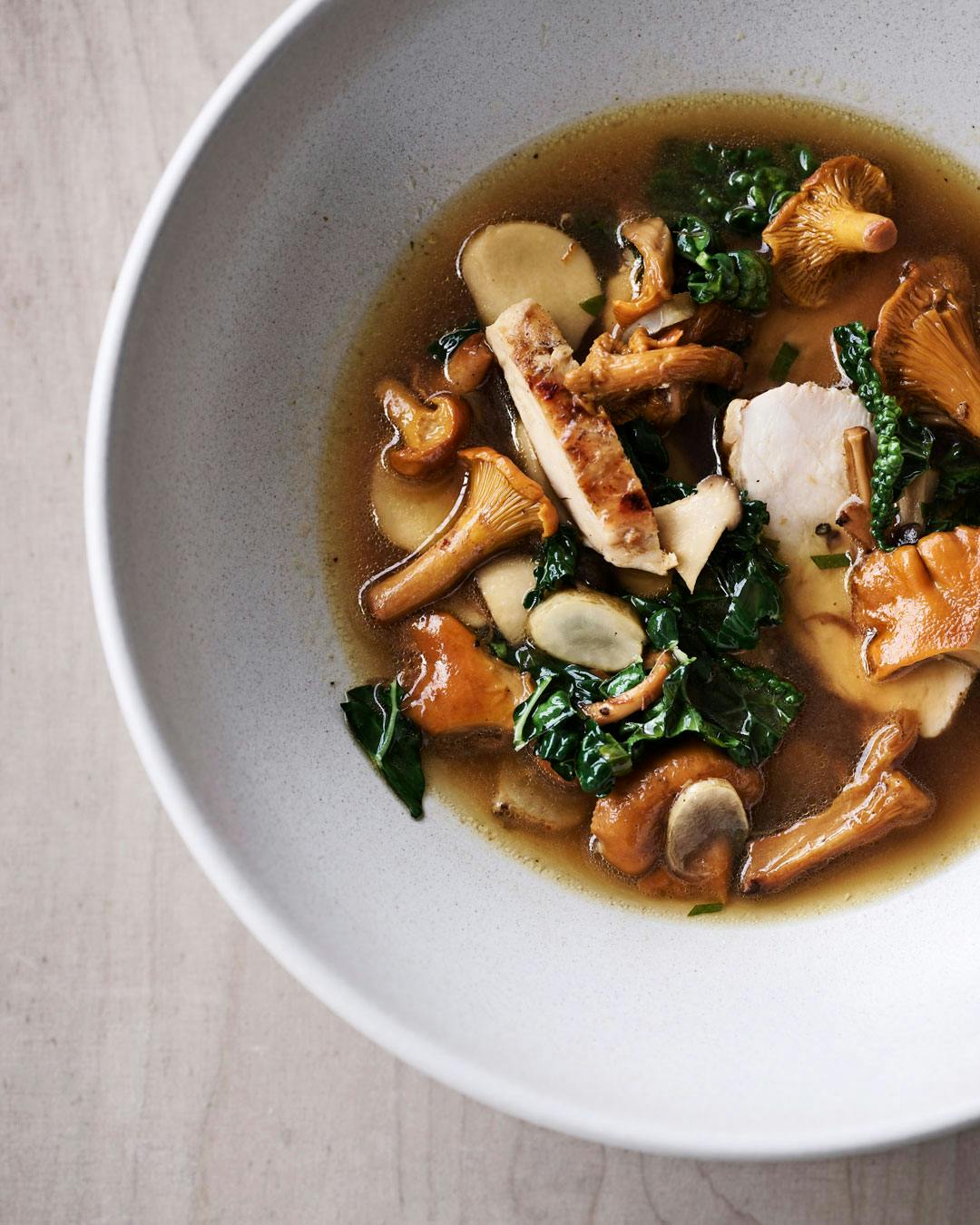 Svampene er en enestående smagsgiver i de fleste salte retter, og sammen med ganske få andre ingredienser kan de hurtigt udgøre et helt måltid. Prøv denne opskrift på svampebouillon med grillet kylling, jordskok og palmekål her! (link fjernet)