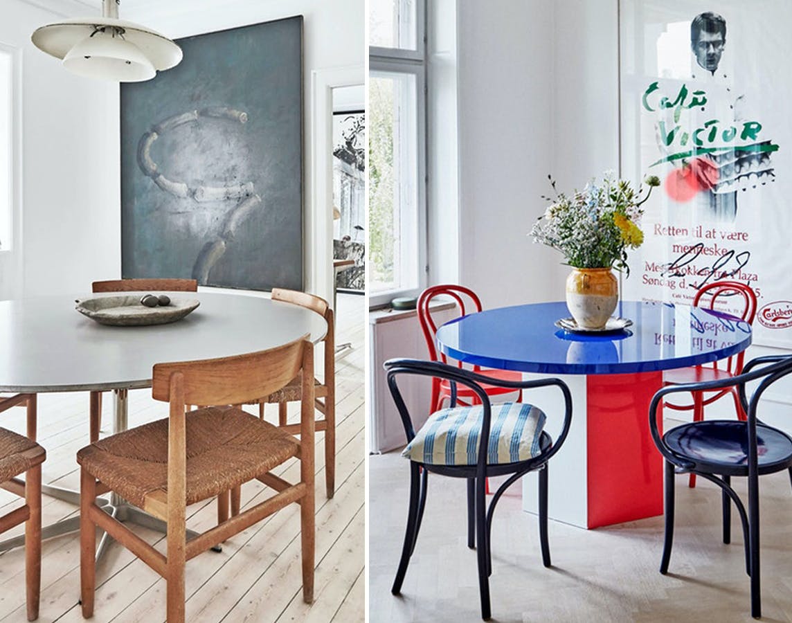 Hvis ikke du ønsker et meget strømlinet udtryk, kan du med fordel vælge forskellige træsorter og former, når du indretter spisepladsen. Foto: Kira Brandt