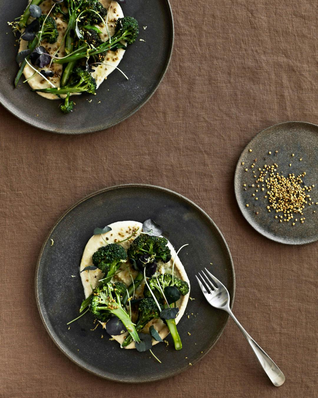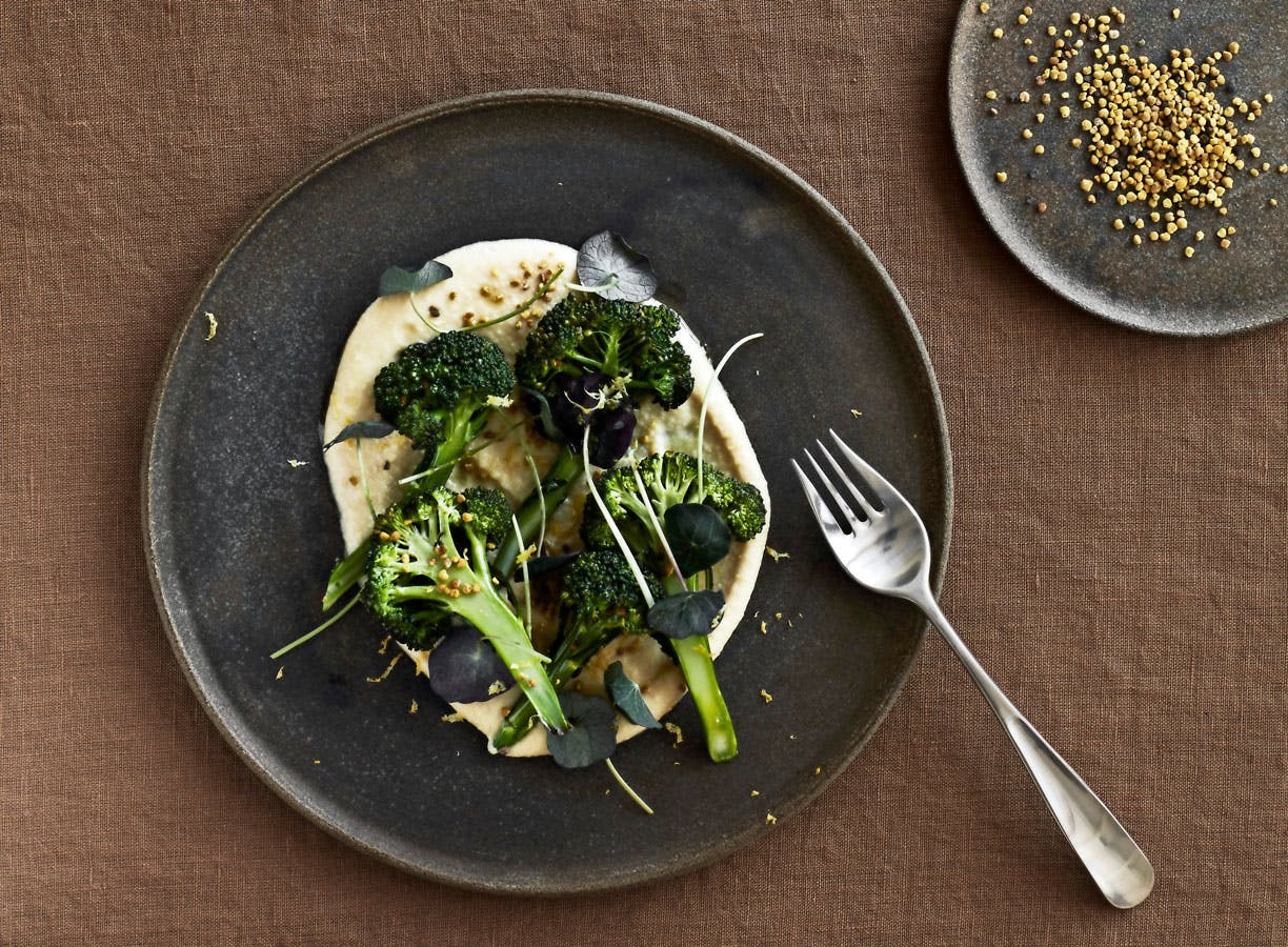 Det skal du bruge for at lave flækærtepuré med stegte broccoliskud, bergamotte, tallerkensmækker og blomsterpollen