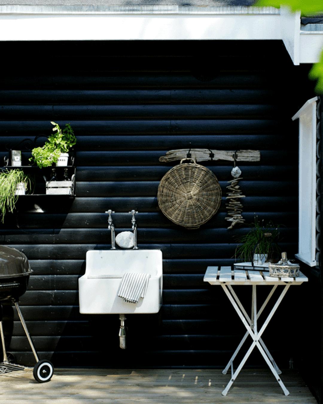 Hvor fin er den her opsætning lige? Her har man pyntet husfacaden med et par hylder, som både virker praktisk, men som også bidrager til det æstetiske.