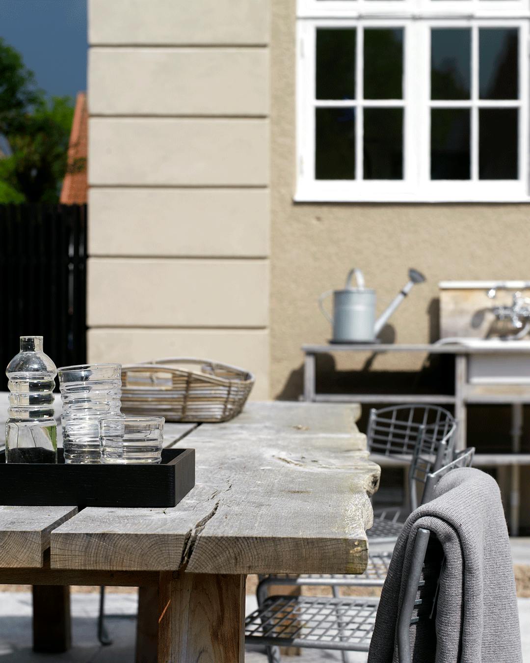 Havemøbler i samme farve som huset er med til at skabe et roligt udtryk og fornemmelsen af, at hus og terrasse hænger sammen.