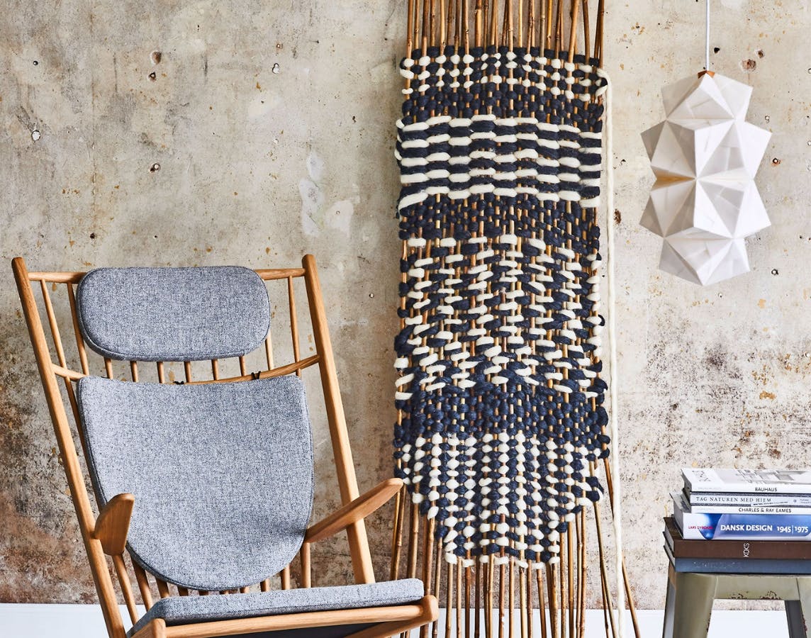 Vi har brugt ubleget hvidt og koksgråt megagarn, men du kan vælge lige de farver, der passer til din smag og indretning. Slip kreativiteten løs, når det kommer til mønsteret eller bliv inspireret af billedet herover.