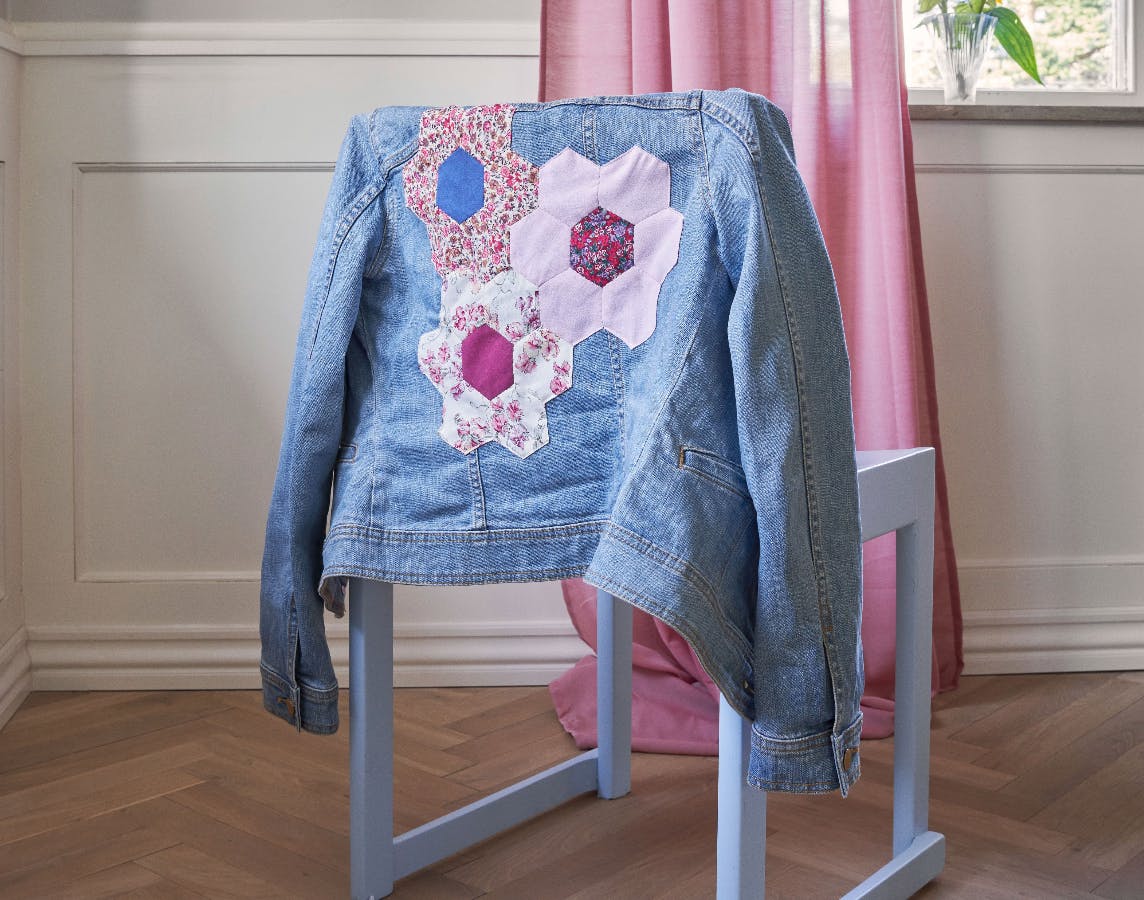 6. Sy patchworkmotivet fast på cowboyjakken på en almindelig symaskine.