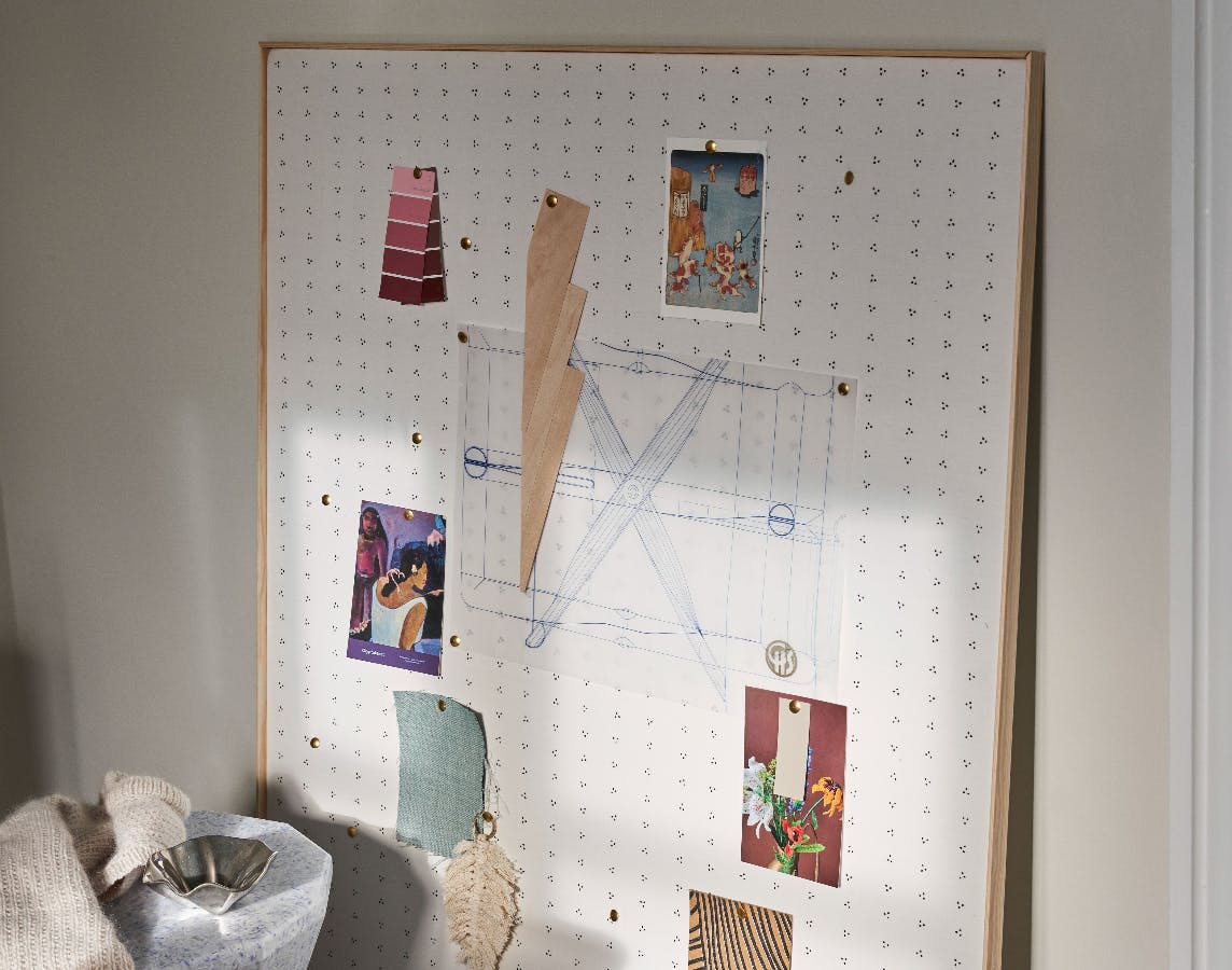 Hovedet er fyldt med gode idéer og tanker til de næste projekter. Få det op på en stor opslagstavle som et slags inspirerende moodboard. Du kan lave en selv – det kræver bare ét besøg i et byggemarked og noget stof.