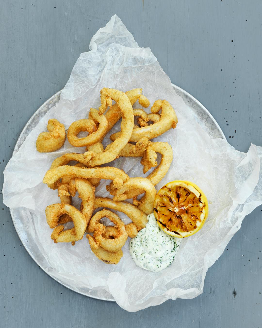 Mange forbinder blæksprutter med de kedelige viskelæderringe i friturefrakke, der ofte er at finde på café-menukortet. Men små friske, stegte blæksprutter er noget helt andet. Få din fiskehandler til at rense en portion af de små ottearmede og steg dem 1-2 minutter på en hed pande, efter de er skyllet og afdryppet grundigt. Tricket til at undgå, at de bliver seje, er at holde temperaturen oppe, så de ikke begynder at koge på panden.
