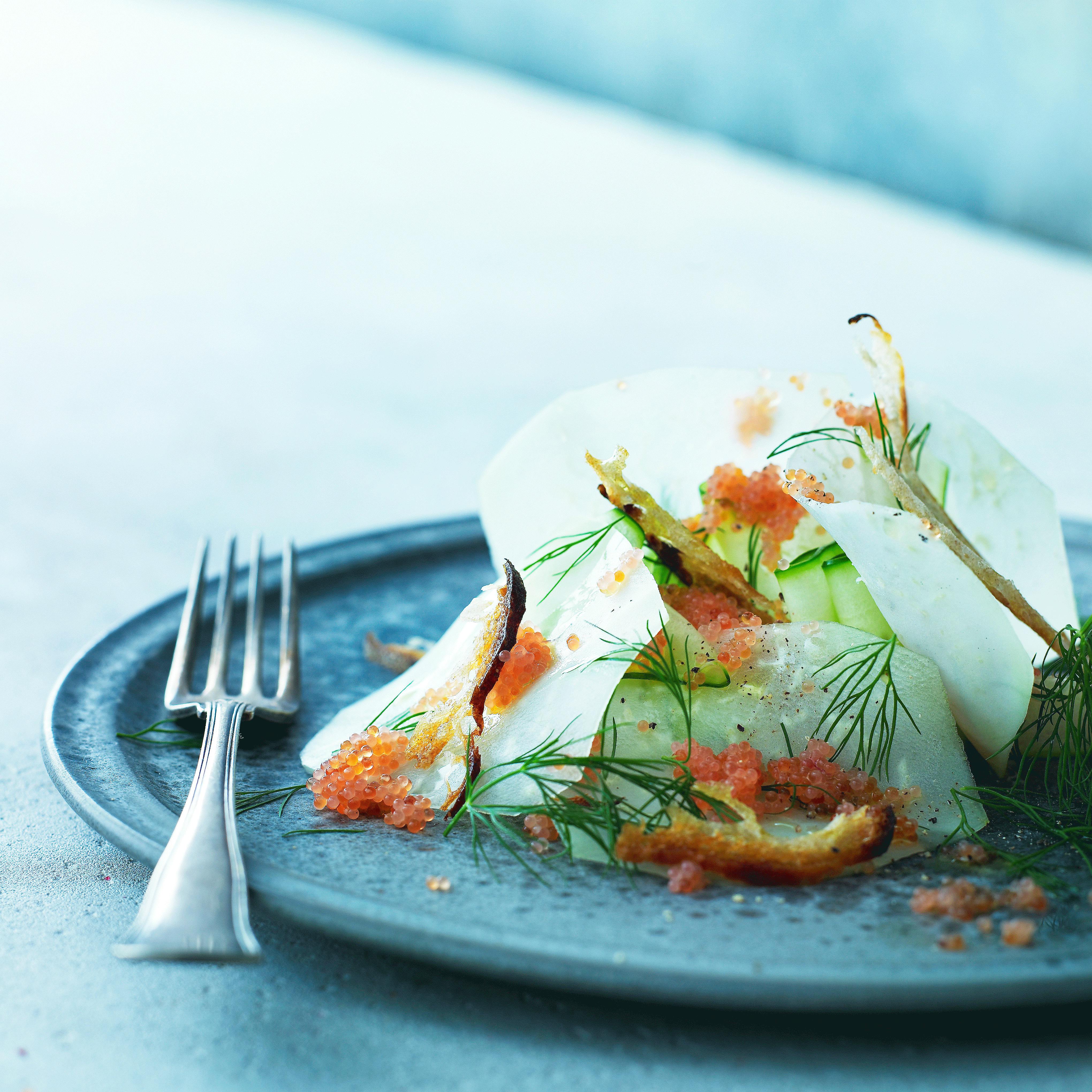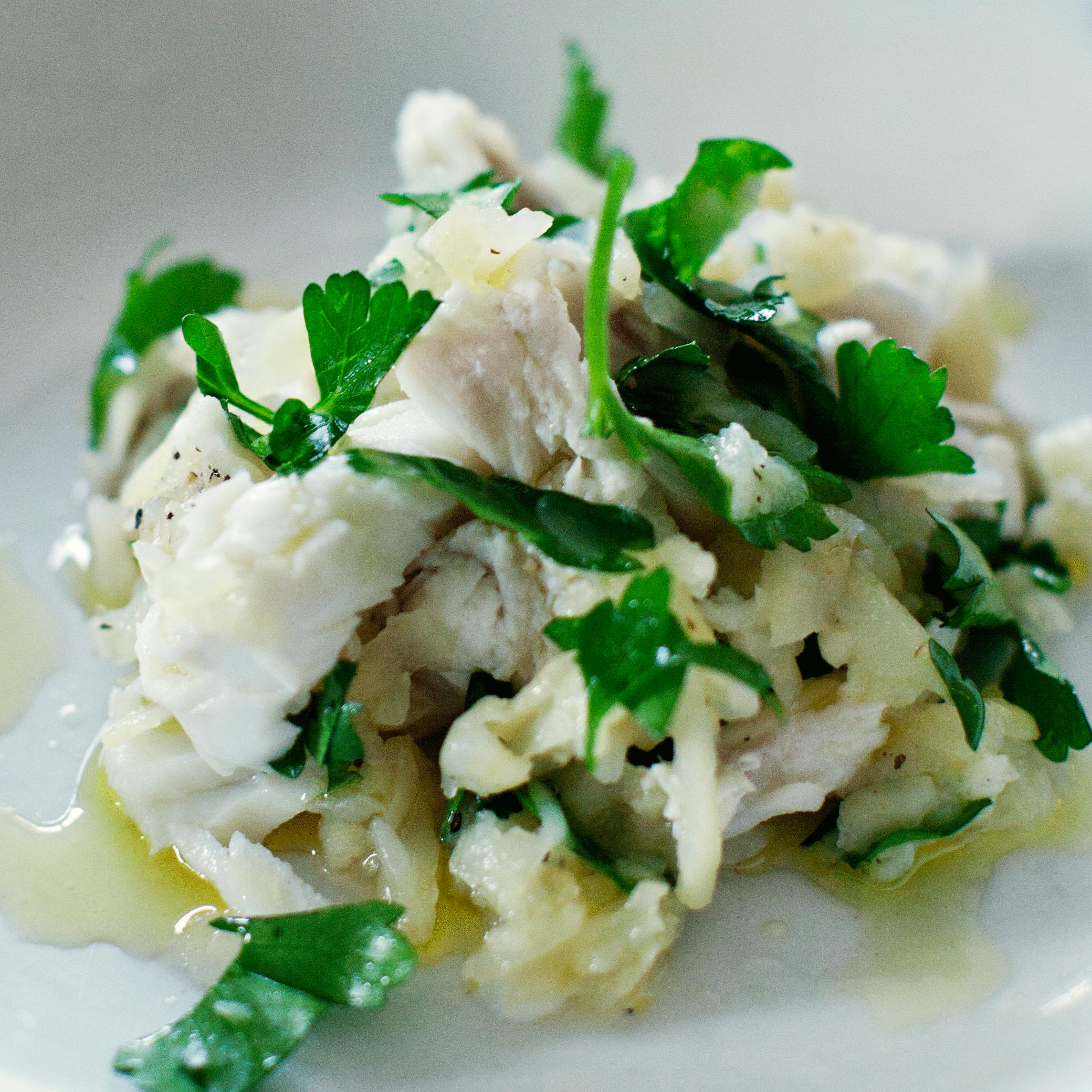 Denne lækre ret med knoldselleri og saltet torsk egner sig perfekt som en let fiske-forret til forårsmenuen.