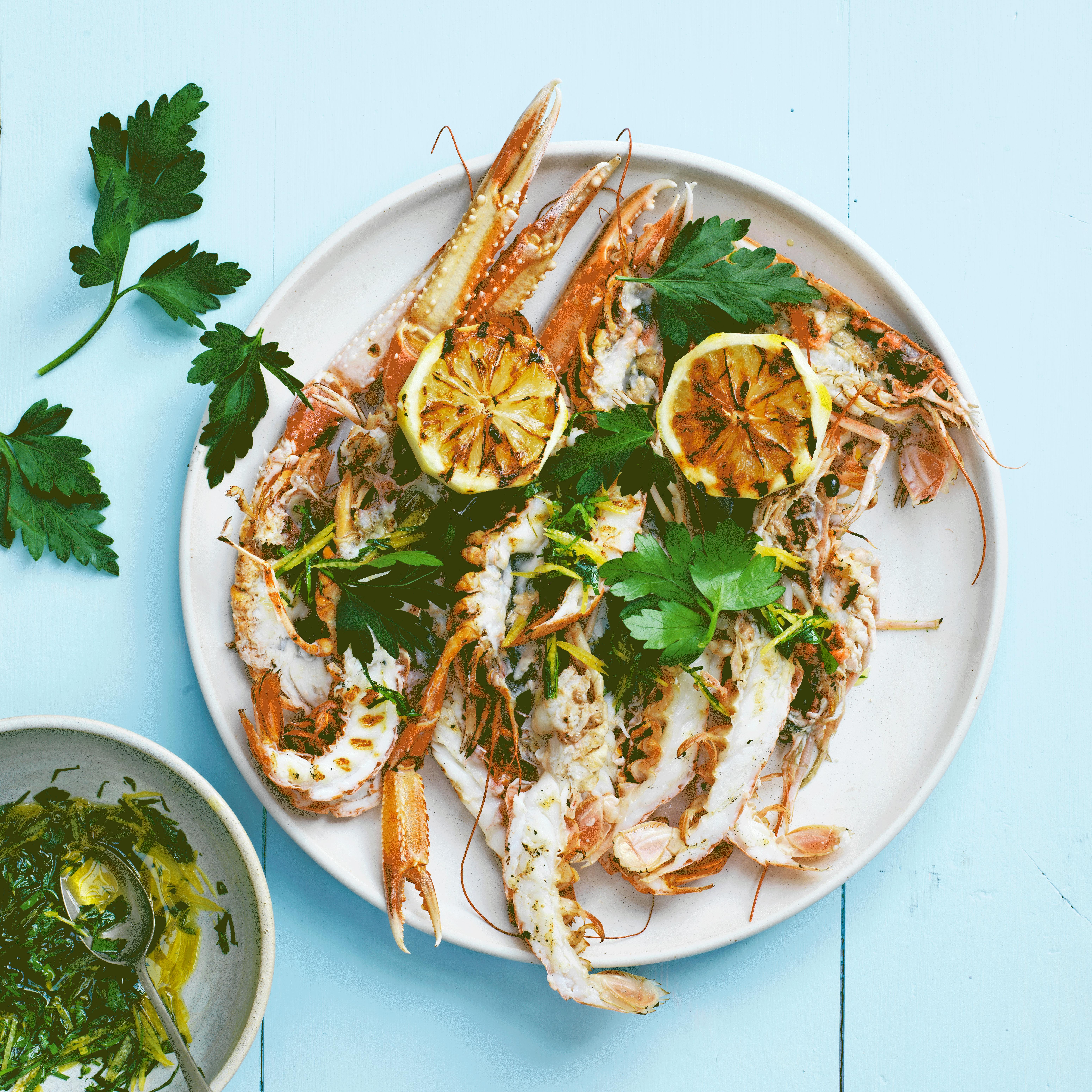Mangler du en sikker fiske-forret, som er en fryd for øje og gane, skal du byde gæsterne på en forret med grillet jomfruhummer med gremolata.
