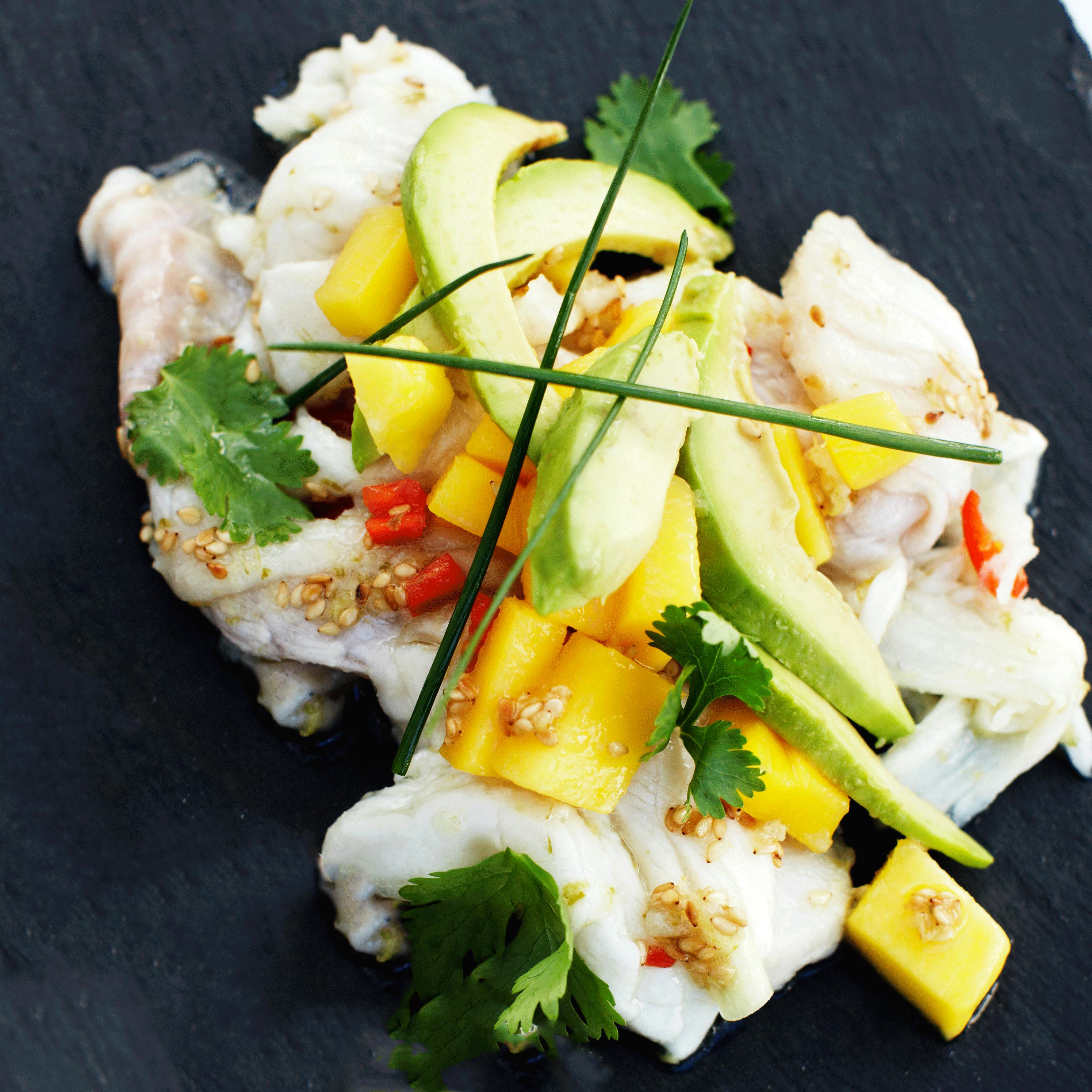Vi har lånt fra det japanske køkken med denne råmarineret torsk kombineret med tang.