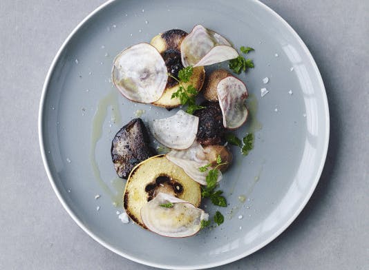 Skal nytårsmenuen være gourmet, er forretter med torsk en sikker vinder. Prøv denne rødbedegravad torsk med kapers og peberrodscreme.