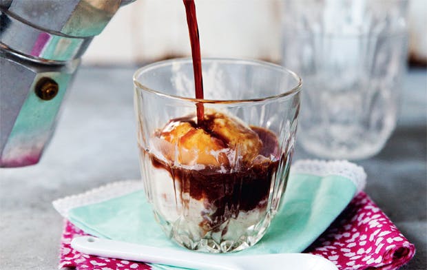 Der findes ingen nemmere dessert end den klassiske italienske affogato. De består ganske enkelt af god vaniljeis med et shot cremet espresso. Den er uhyggelig populær i og udenfor Italien, og det er der mange grunde til: den kan anrettes på få minutter, den cremede espresso vækker middagsgæster, og så kan alle jo lide kombinationen af god vaniljeis og god kaffe. Vi har lavet en version med hjemmelavet vaniljeis, men du kan også sagtens bruge en færdigkøbt vaniljeis af høj kvalitet - så er den endnu nemmere at lave.