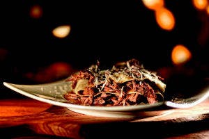 Anretning: Læg den første del af lasagnepladen på tallerkenen og læg en masse anderagout ovenpå. Hæld lidt sovs ved, og drys med salt og peber. Nu folder du lasagnepladen ind over andekødet og lægger mere andekød oven på dette lag. Sovs og salt og peber igen. Fold det sidste stykke lasagneplade indover, og gentag med kødet. Riv masser af god pecorino eller parmesan henover og server.