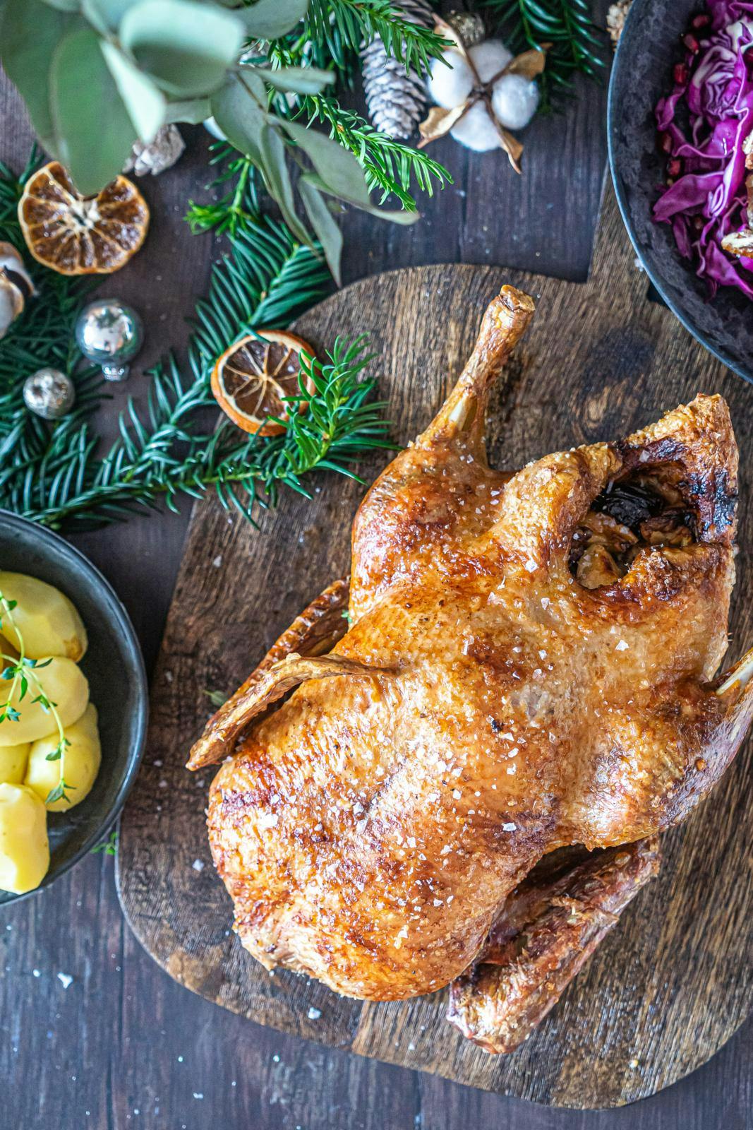 Tip! Hvis anden er frossen, så tø den op i køleskabet 2-3 dage forinden, alt afhængig af størrelsen.