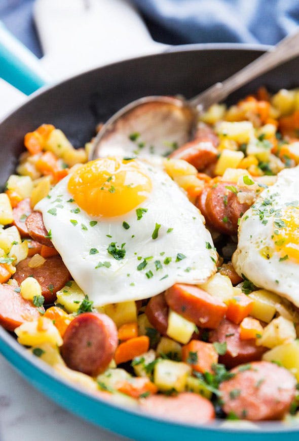 Biksemad er typisk en ret, vi laver ud af de rester, vi nu har i køleskabet. Men du kan jo sagtens få lyst til en ordentlig omgang biksemad til aften, selvom du ikke står med madrester, der bare skal bruges. Vi har skiftet kødresterne ud og givet den traditionelle version et pift med chorizo. En perfekt ret, når det skal gå hurtigt med aftensmaden - men stadig smage skønt.