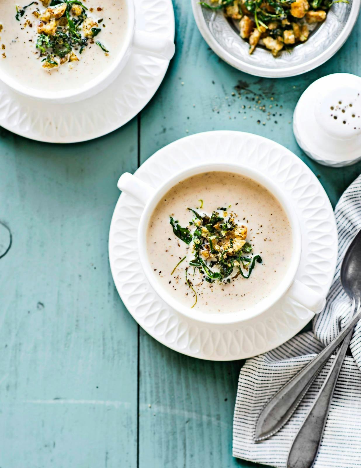 Smag til med salt og peber, og drys toppingen over suppen inden servering.