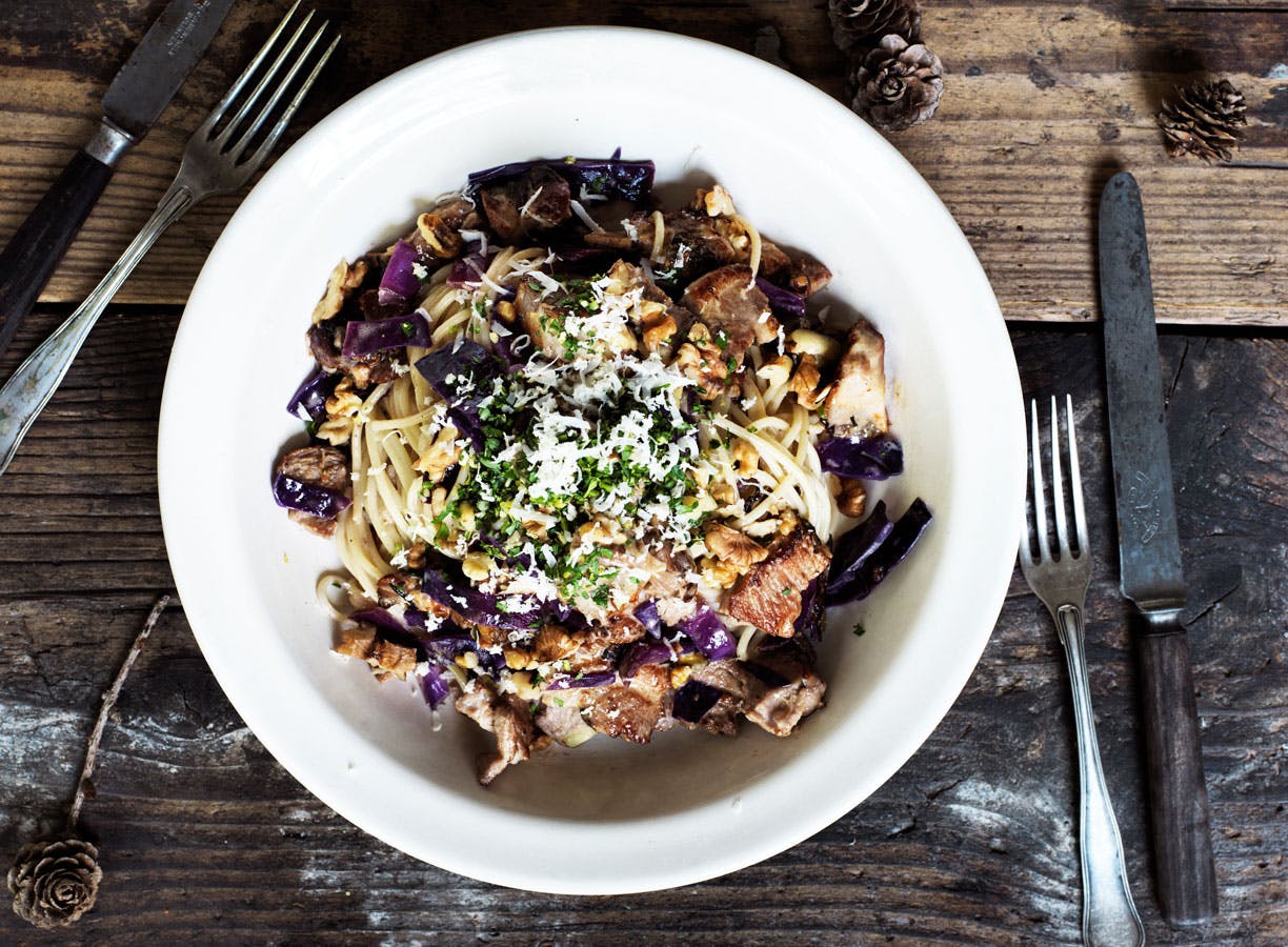 Julen er højtid for madspild, men der er der absolut ingen grund til, hvis det står til Gorm Wisweh, som er manden bag gourmetpizzakæden Gorms Pizza. Han er en mester i at udnytte alle de gode råvarer og rester af ande- og flæskesteg til lækre hverdagsretter med smag af jul - og lidt af Italien. Her får du hans opskrift på restemad, der kombinerer resterne af kål og steg med valnødder og gremolata. God jul fra Italien!