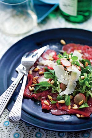 - Få slagteren til at skære kødet helt papirtyndt. Skal man selv gøre det, kræver det en pålægsmaskine. Skær kødet i let