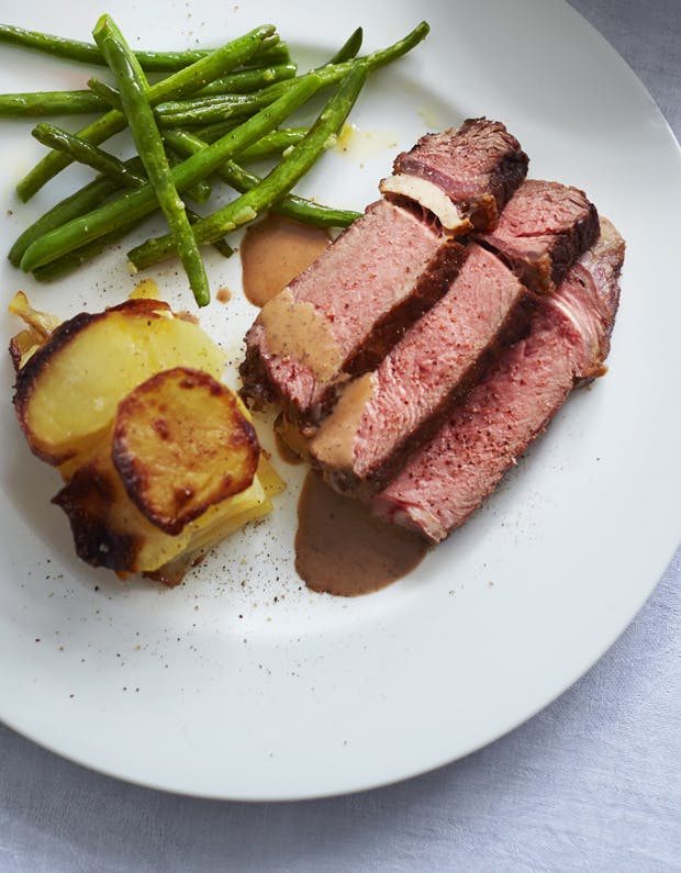 Fransk mad er bare altid et hit. Det vli dine gæster garanteret også synes, når du serverer de her lækkerier for dem i form af bøffer af højreb, rødvinssauce med fløde og grønne bønner med masser af god hvidløgssmag. Og du skal bestemt ikke være bange for fedtkanter på kødet, for smagen sidder i fedtet, som man siger i Frankrig! Steg bøfferne medium, og skær dem i skiver lige før servering. Servér côte du boeuf med ovnbagte kartofler til