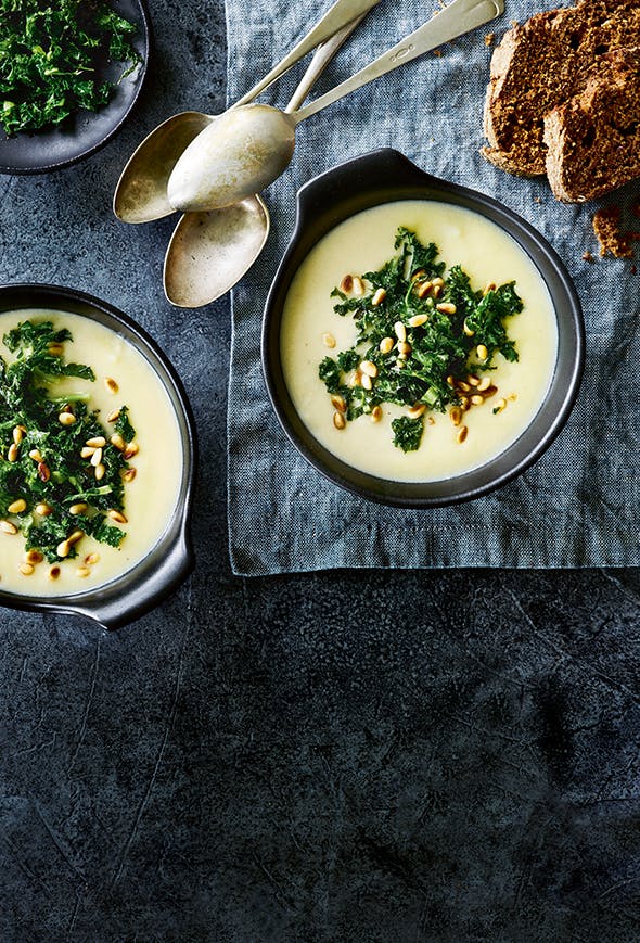 Den bedste blomkålssuppe? Det siger ikke så lidt, men det mener vi faktisk. Denne har fylde, bid og grønkål, og det binder hele årstiden sammen i et lunt og nærende måltid. Alle kan være med, og det gør suppen god både til hverdag, men også som gæstemad, hvis det skal være både nemt og lækkert.