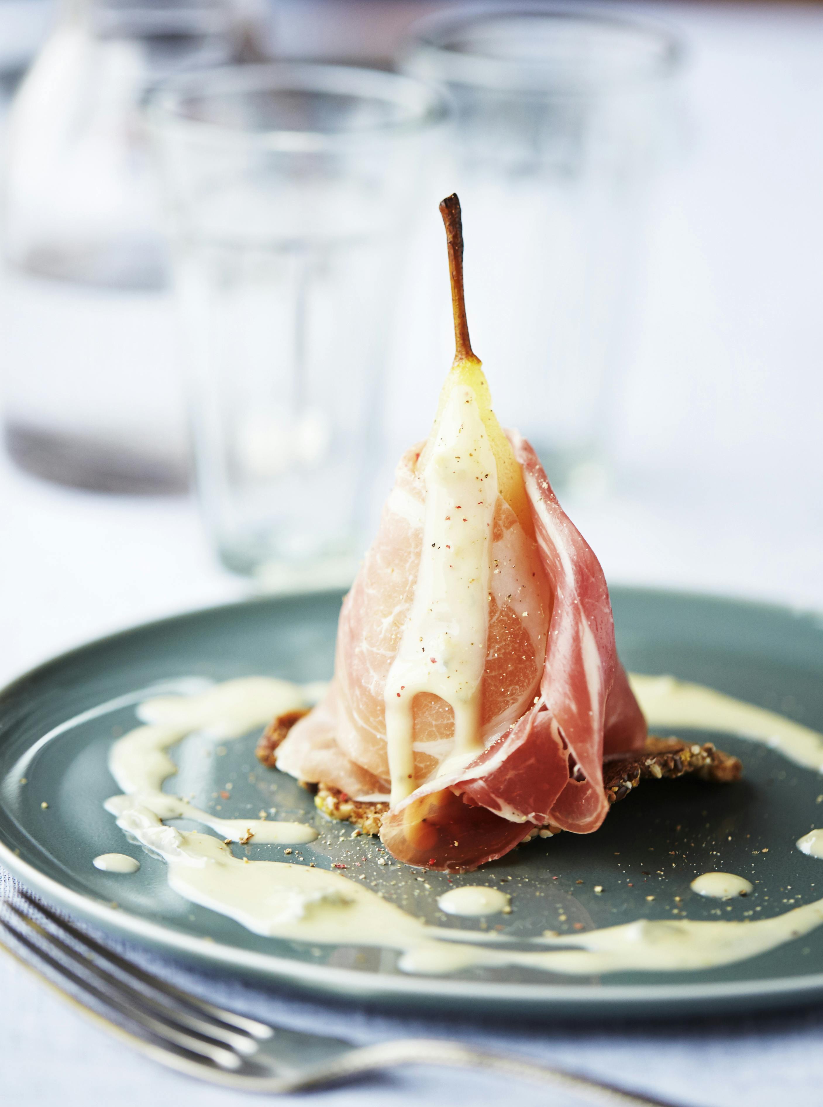 Mange kender den gode kombination af ost og pære fra desserter, men her er den brugt i en skøn forret til osteelskere. Retten får lidt ekstra fylde med parmaskinke, der også giver den salte og røgede smag, som passer så godt i samspil med pærens syrlig-sødme og ostens skaphed. Du kan naturligvis bruge andre blåskimmeloste end gorgonzola, ligesom det er op til dig, om du vælger en ekstra stærk variant.