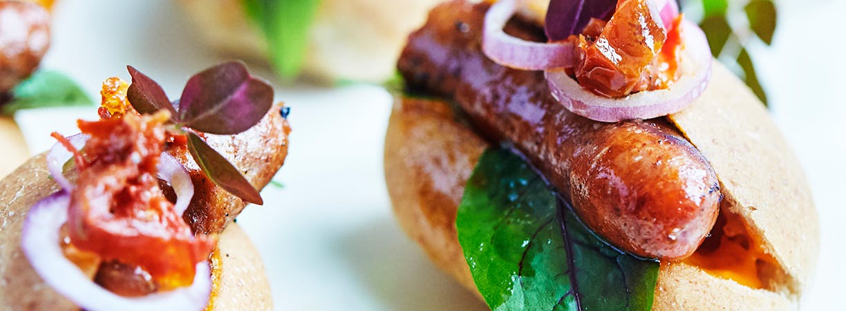 Hotdogs til forret er en lille smule alternativt, men det er stadig utroligt lækkert! Hop med på gourmet-fastfood-bølgen, og servér mini-hotdogs (link fjernet) for gæsterne som en appetitlig forret.