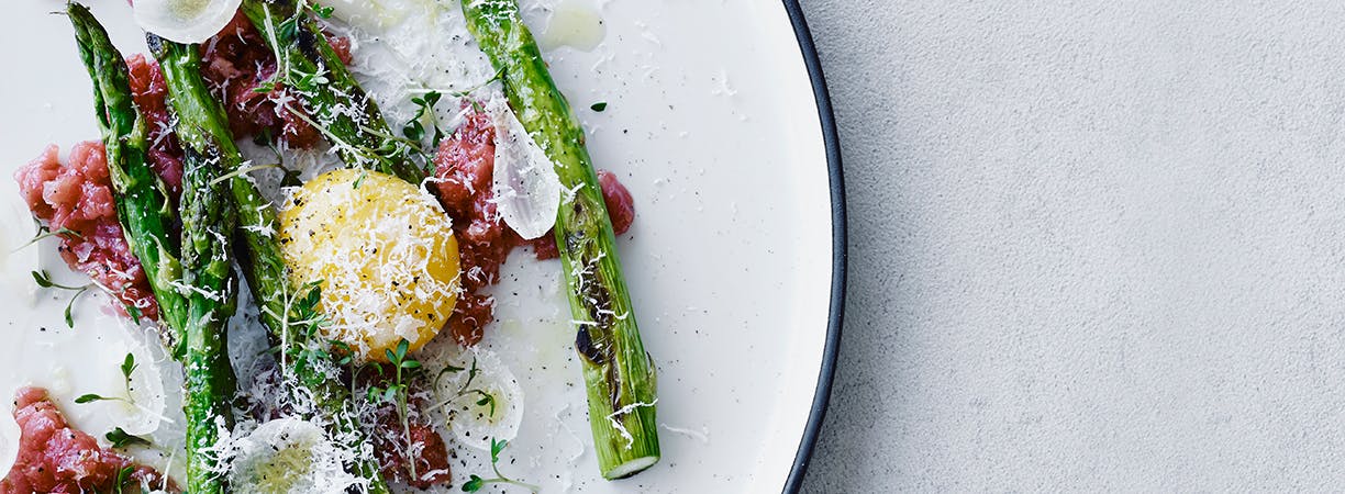 Du kan også prøve kræfter med kalve-tatar, der gør sig perfekt som forret! Prøv denne opskrift på kalve-tatar med stegte asparges, syltet løg, parmesan, karse og æggeblomme. (link fjernet)