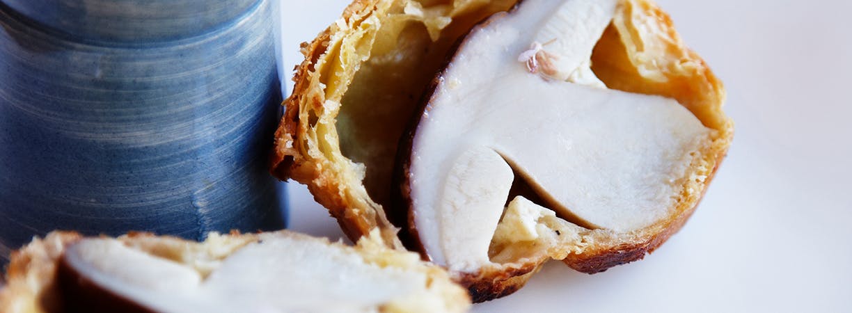 Lav en enkel men smuk forret med denne opskrift på hel karljohansvamp i butterdej (link fjernet) fra Michelinrestauranten Folcons de Sel i Frankrig.