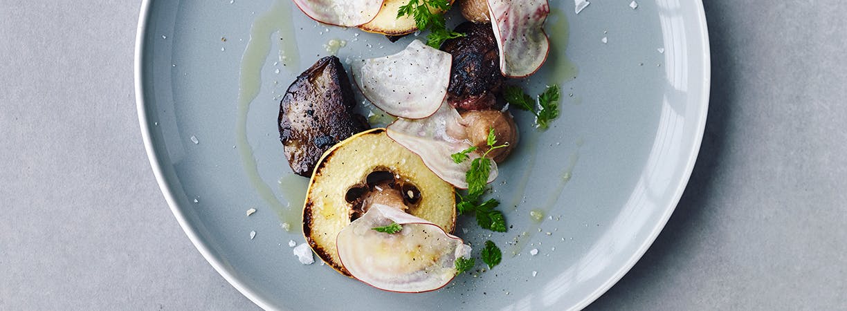 Vil du imponere dine gæster med en af de lidt mere komplicerede foretter, så prøv denne opskrift på stegt kyllingelever med kvæde, bolsjebeder og kørvel. (link fjernet)