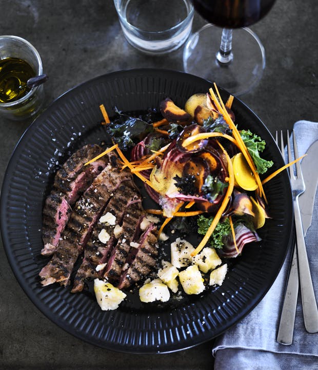 Tip! Lav også retten med okse, gris eller lam, og varier salaten. Den kan laves med de fleste rodfrugter.