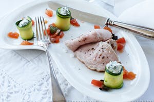 Helstegt kalvefilet i ovn med tomat og courgette som tilbehør