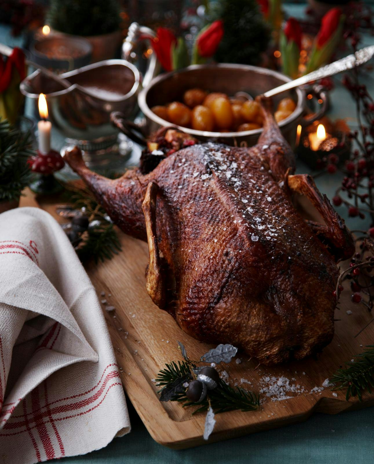 Her får du en komplet opskrift på julens bedste andesteg med andesauce og kogte kartofler.