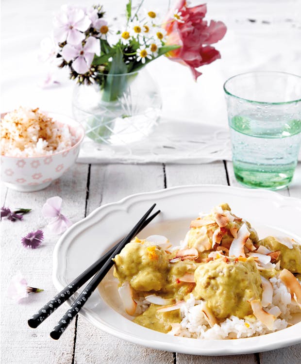 Hverdagsklassikeren boller i karry har fået en asiatisk nyfortolkning! Ved at udskifte svinekød med kylling og tilsætte kokosmælk i saucen får retten et nyt og mere friskt udtryk. Opskriften på de hjemmelavede krydrede kyllingeboller i kokossauce er nem at gå til og er en skøn variation, når du vil servere kylling på en hverdag.