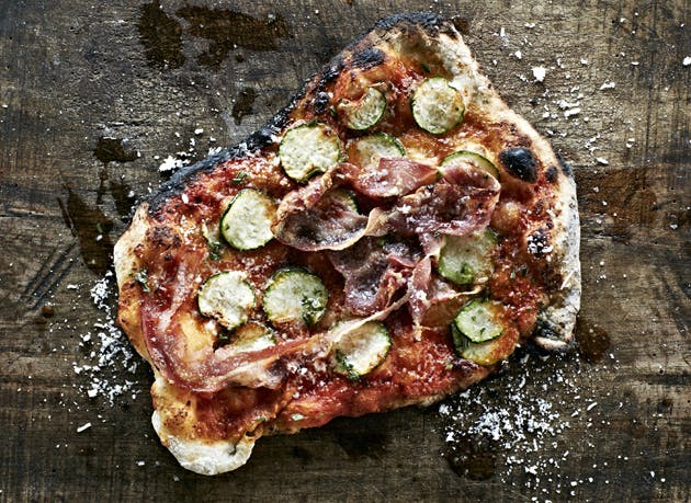 Hvis du mangler inspiration til weekendens mad, giver vi her en lækker opskrift på en god pizza. Denne pizza har fyld af courgette og pancetta - en dejlig blanding af en mild grøntsag og saltet pølse, krydret med rosmarin. Pancetta er en speciel pebertørret bacon, og den kan sagtens erstattes med bacon eller parmaskinke. Server pizzaen som aftensmad, frokost eller skær den ud til små forretter til dine middagsgæster.