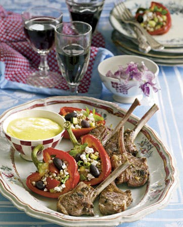 Hovedret: Marinerede lammekoteletter med fyldte peberfrugter og aioli