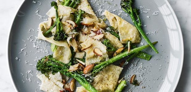 Opskrift på nem aftensmad med frisk pasta, broccoli og mandler. Få den her