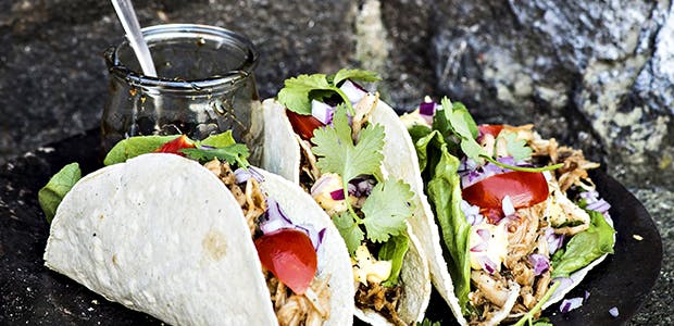 Opskrift på nem aftensmad med tacos med pulled chicken. Få den her