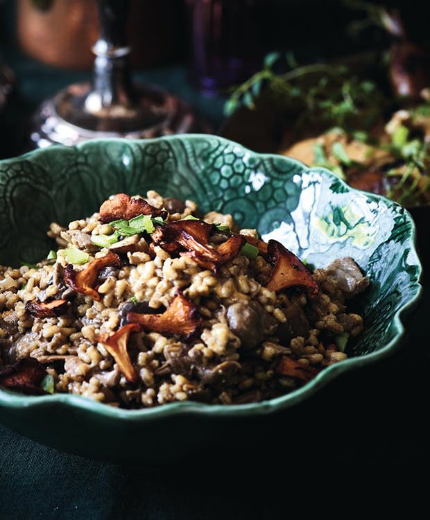 De fleste kender risotto, men har du prøvet at lave "bygotto"? Forskellen er blot, at retten laves med perlebyg i stedet for risottoris - og det giver et skønt bid! Vi er vilde med denne cremede version med masser af efterårets gode råvarer. Her får du opskriften på perle-bygotto med svampe og valnødder.