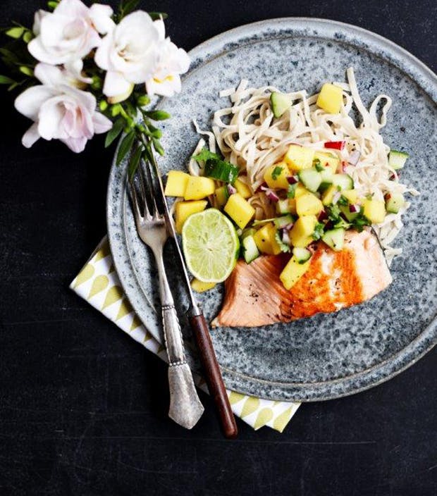 Stegt laks med nudler og mangosalat: Få opskriften her! (link fjernet)